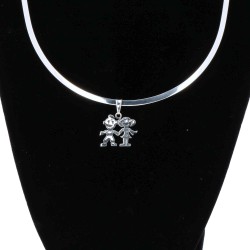 Ce pendentif en argent massif représente un garçon et une fille. Il peut s'adapter à la fois à un collier rigide, une chaine, un tour de cou en cuir ou encore à un bracelet.